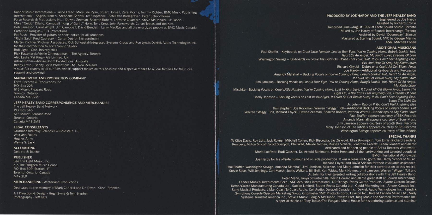 JEFF HEALEY Lead Guitar/Vocal, JIMI JAMISON Background Vocals, AMANDA MARSHALL Background Vocals, JOE ROCKMAN Bass, PAUL SHAFFER Keyboards, TOM STEPHEN Drums
